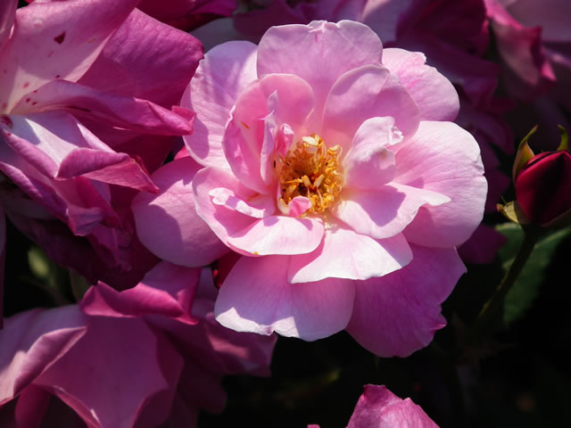 コウシンバラ: 花の見頃:5月中旬~中旬 花:四季咲き、淡いピンクから濃いピンク 原生地:中国