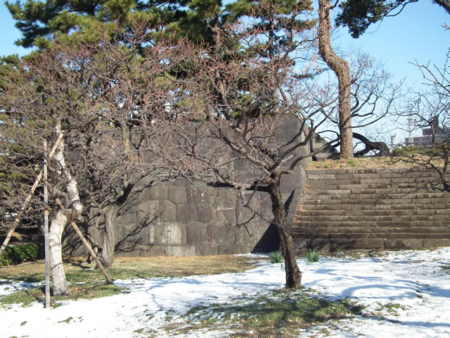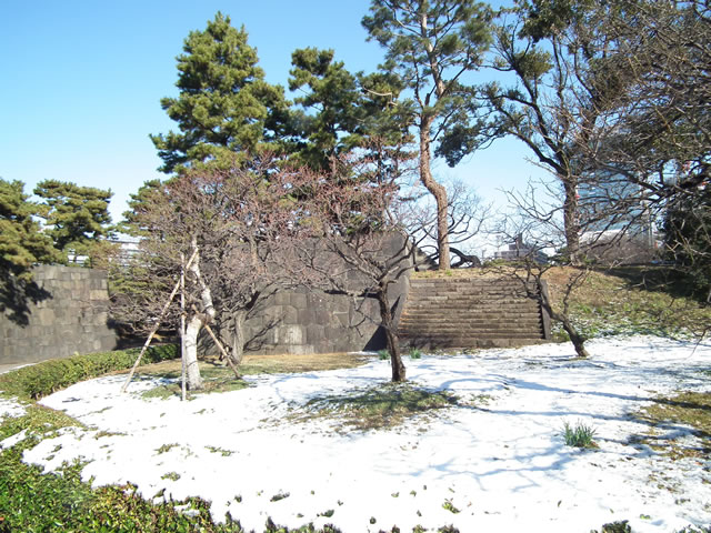 2012年1月25日の皇居東御苑は雪が残っていました。有名な「平川門の脇門=浅野内匠頭や大奥取締・生島などが通ったという」も雪でした。