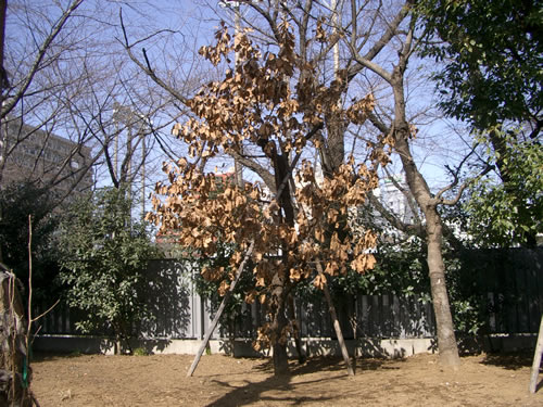 昭和31年卒寄贈の柏も、冬に耐え、枯葉を落とさず毎年の春の新芽を迎えてきました。 我々も、次世代の戸山高校生の更なる活躍を願いつつ、50周年を迎えたいと思い、「柏」の近況も口絵とさせて戴きました。