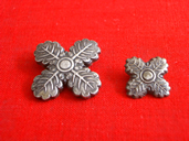女子用・冬夏(左側)、男子用・ボタン、バックル、帽子紐、帽章(右側)の校章;