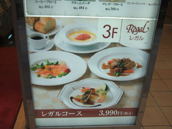 「中村屋本店3Fレガル」 Regalとは、フランス語で「ごちそう」を意味するとのこと。中村屋伝統のカリーと共にフレンチも提供しているのだそうです。 戻るページトップ