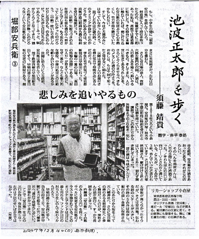 「新聞記事・詳細」 2007年12月16日付け毎日新聞の作家・須藤靖貴氏、写真家・荒牧万佐行氏の記事です。