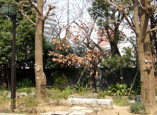 左は、新校舎と共に植えられた「紅梅・白梅」です。いまだ若木ですが年々大きくなっています。大宰府天満宮の「飛梅」は、1100年の歴史とか、この梅も戸山高校と共に永く栄えてほしいと思います。
