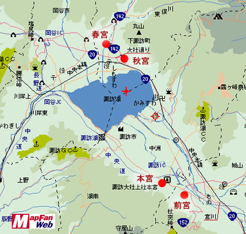 諏訪大社(すわたいしゃ)とは、長野県の諏訪湖近くにある神社です。諏訪湖の南に、上社(かみしゃ)本宮・前宮が、北に下社(しもしゃ)春宮・秋宮があり、合計4箇所に社殿があります(←)何れの社殿も四隅に「御柱(おんばしら)」と呼ばれる巨大な木の柱(神木=樹齢200年ほどの樅の巨木・直径約1m、長さ約17m、重量約10ton)が建てられ、祭神の「依り代」と考えられています。全部で4x4=16本あります。