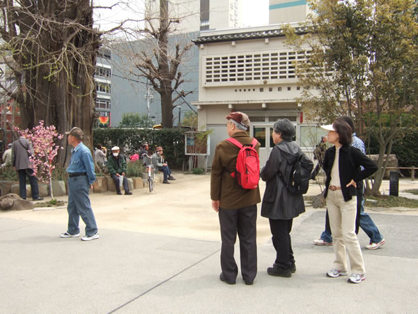 本堂の東側に五重塔跡があります。1648年建立~1945年空襲で焼失。傍らに、古い銀杏の木がご神木でした。鎌倉八幡宮の大銀杏の話題もあり、参加者が『銀杏は仏教と共に中国から伝来』と、歴史を感じておりました。