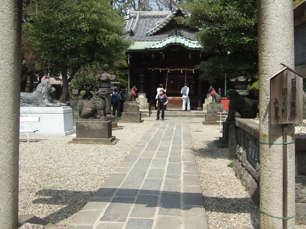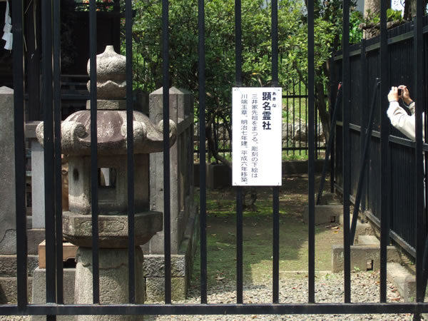 江戸時代に京都の豪商三井氏(越後屋・後の三越:デパート屋上に祀る)が江戸進出にあたり守護神とし店に祀り、、その縁で三井家先祖をまつる「顕名神社」・「池袋三越店閉鎖に伴い引き取ったライオン像(←)」などがありました。