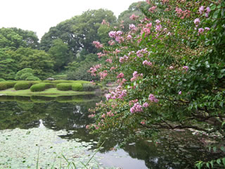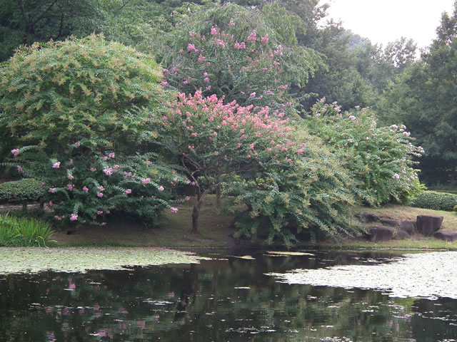 「湖畔のサルスベリ遠景」 池の東側にあるサルスベリ。