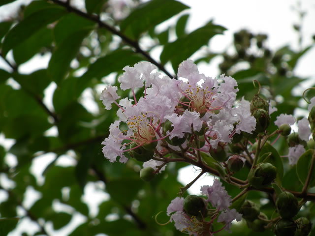 「サルスベリの花:Ⅱ」 紅の濃淡または白色の花があります。