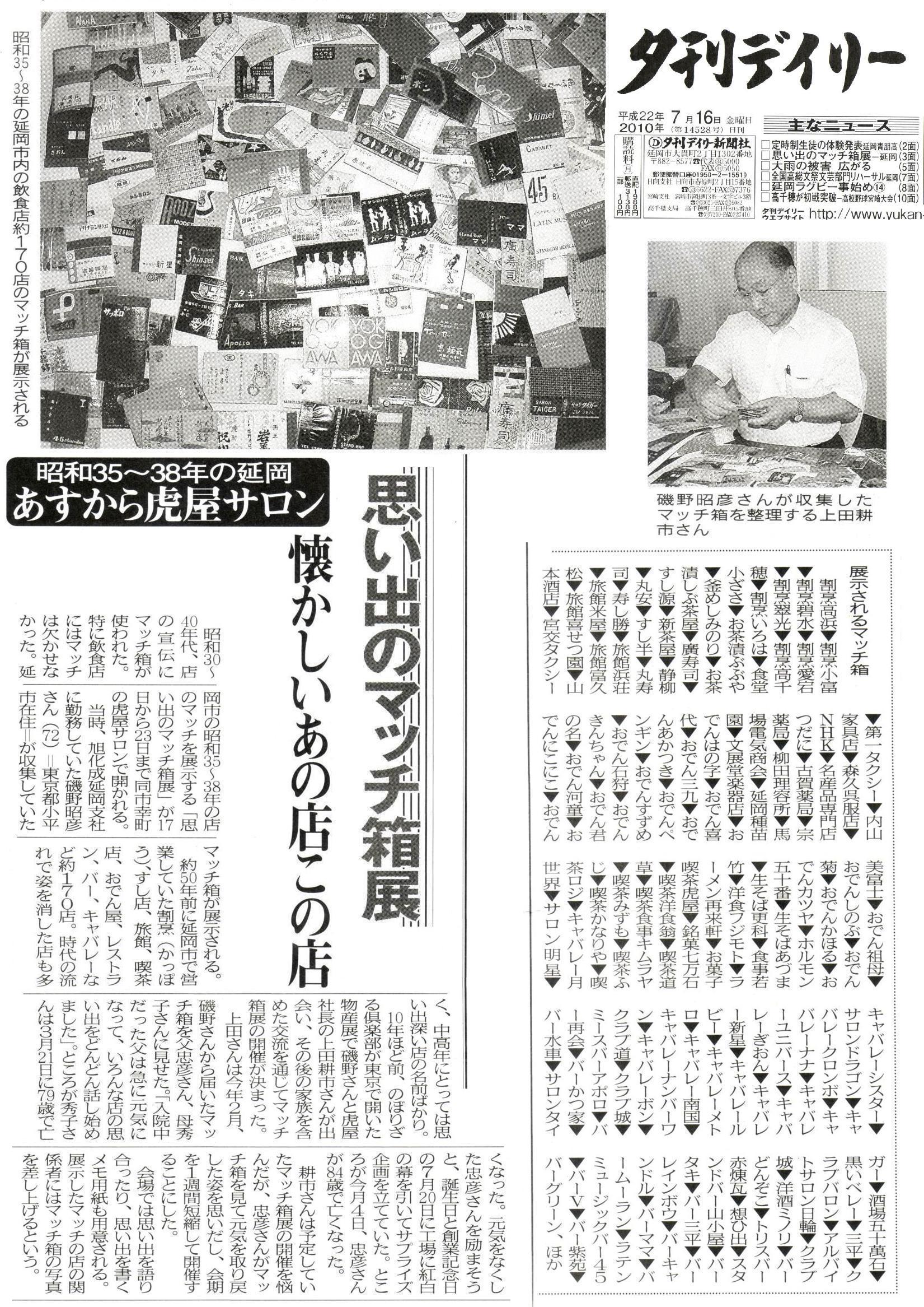 思い出のマッチ箱展 1: 延岡地元紙「夕刊デイリー」から 宮崎日日新聞にも大きく取り上げられました(←クリックで拡大します。) 戻るページトップ