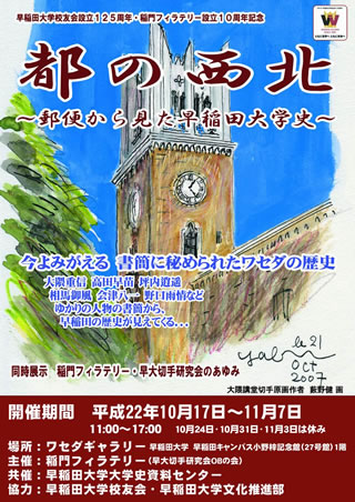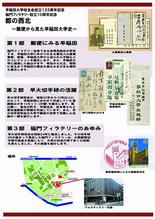 郵便から見た早稲田大学史の案内(表面): 拡大してA2ポスターとしても配布しています。 (←クリックで拡大します。) 戻るページトップ