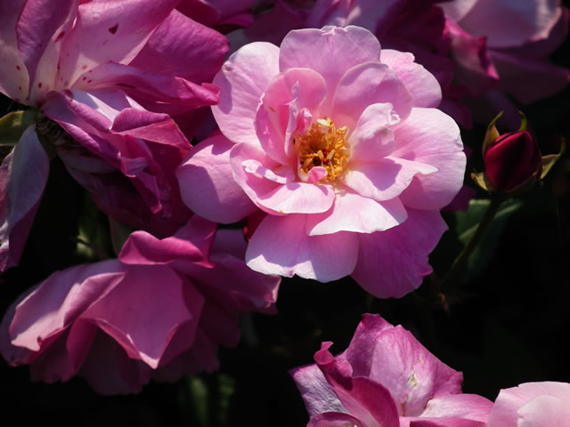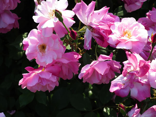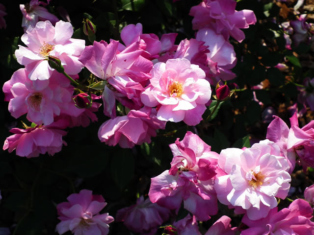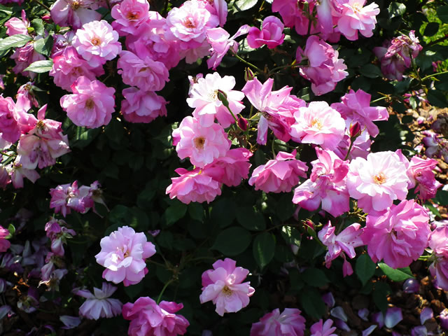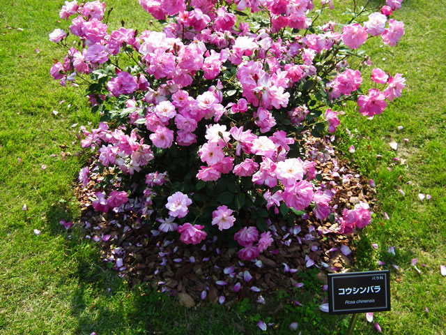 コウシンバラ: 花の見頃:5月中旬~中旬 花:四季咲き、淡いピンクから濃いピンク 原生地:中国