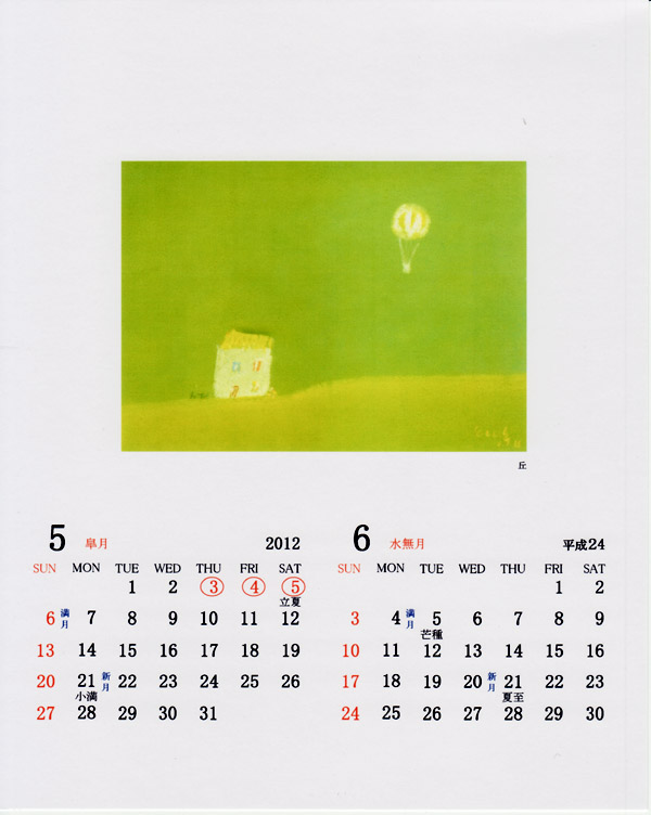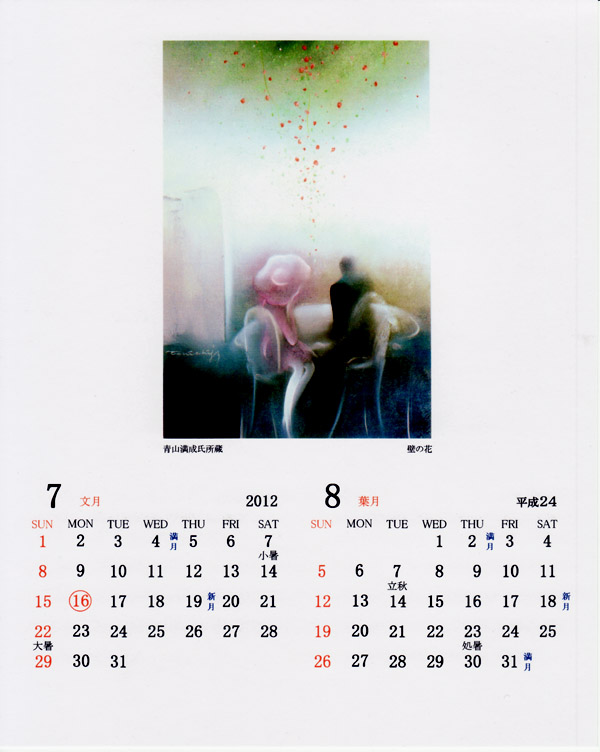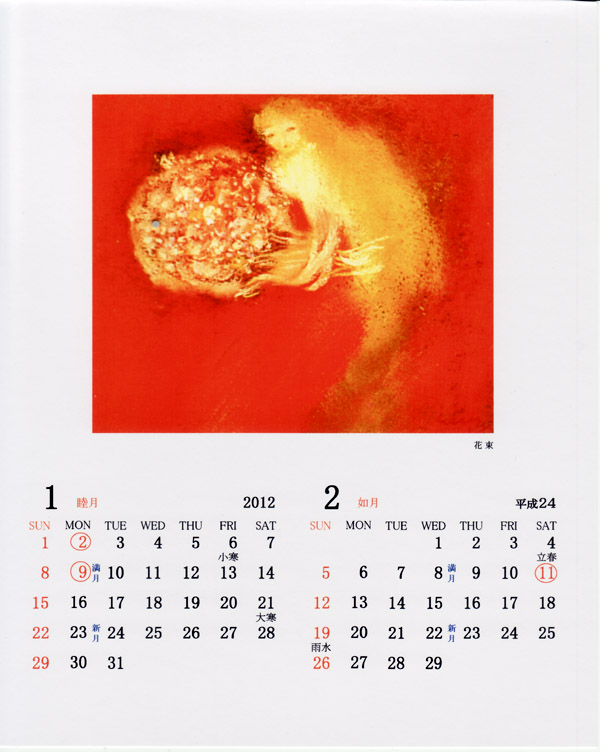 HANA MOON Co.の増田文雄さんから「渡辺藤一パステル画 Calendarをお送りいただきました。平成24年・二十四節季 月齢入り 私家版とのことです。画像を600X736としましたので、画面に入りきらない場合は「Ctrl-keyとminus-keyで画像を小さく表示してください。」