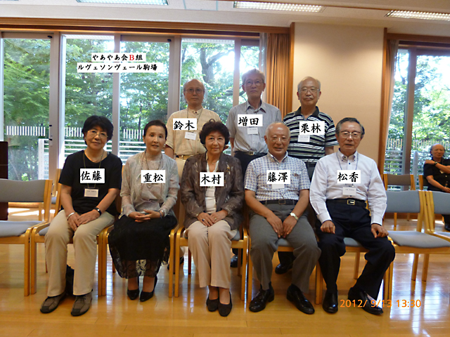 B 組の出席者は:鈴木、増田、栗林、 佐藤、重松、木村、藤沢、松香、(広田)、(福島)の各氏でした。
