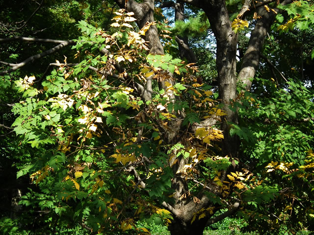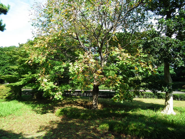 モクゲンジは、紅葉し地上に落ちた実は綺麗に手入れされていました。