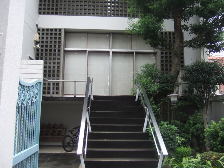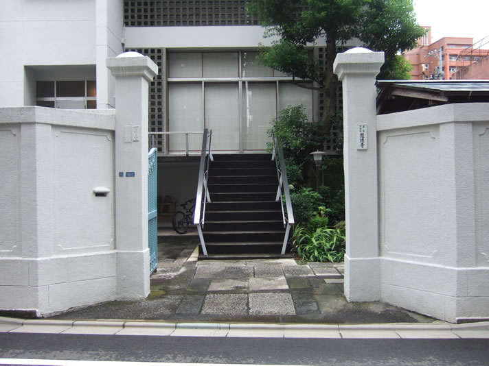 「お寺の正面入口」 道路に面した正面入口には立派な青銅色の扉がありました。宗教活動に活発なお寺のようで、「一九五五年の真宗大谷派・不戦決議」などを掲示しておられます。 戻るページトップ