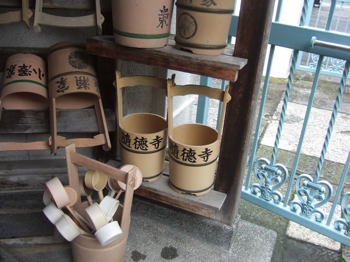 「水桶・柄杓など」 墓地の入り口に、共用のものが用意されていました。 戻るページトップ