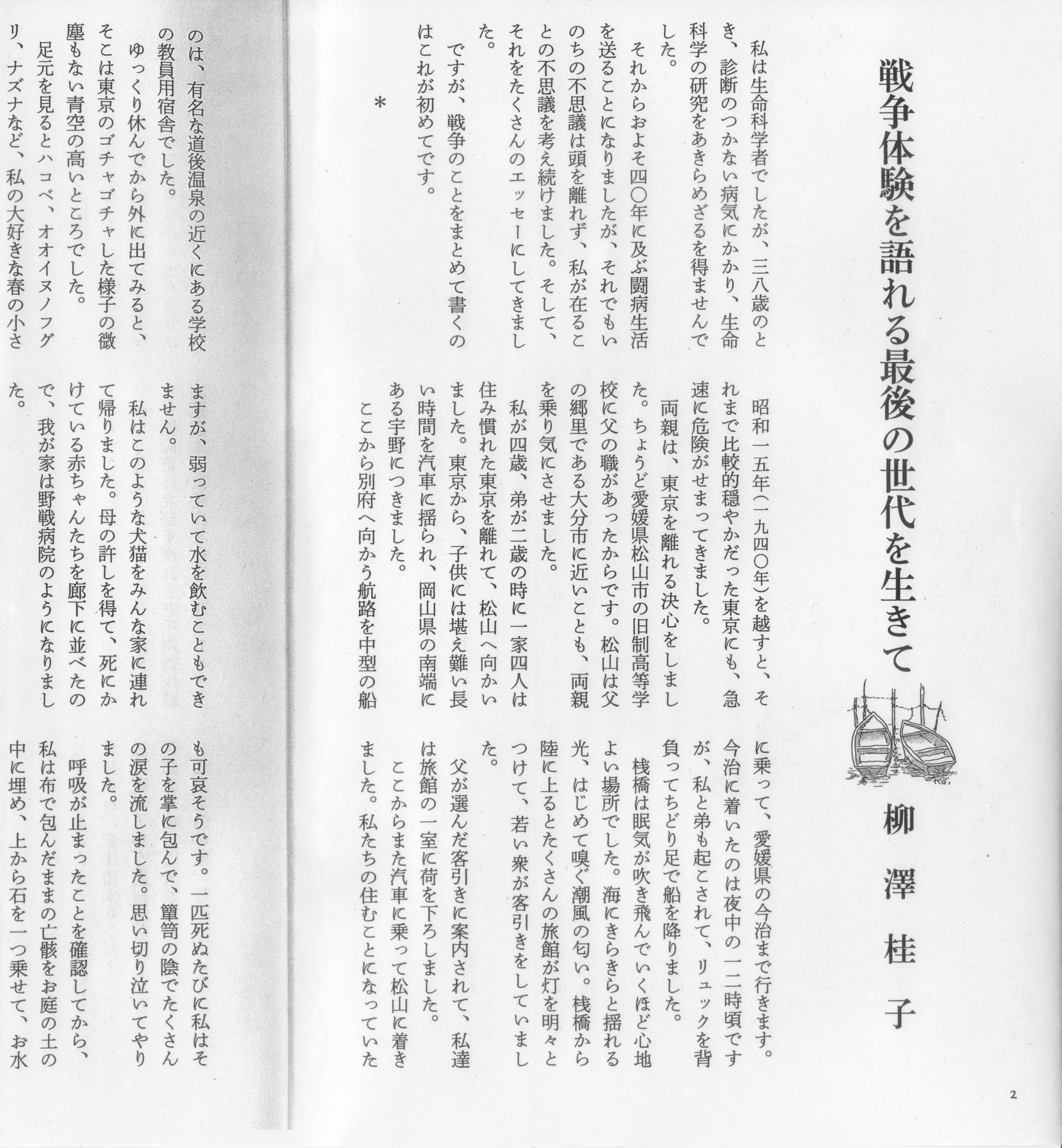 表 題 : 戦争体験を語れる最後の世代を生きて
