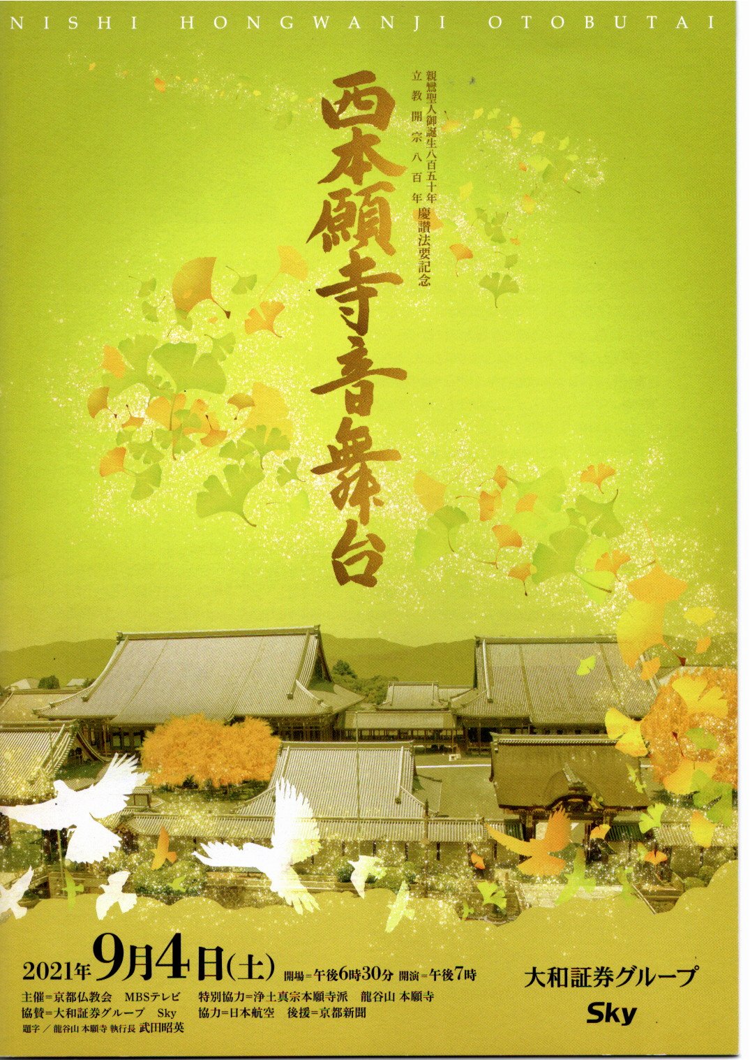 - 音舞台とは、京都佛教会とMBSの主催で、京都の名刹において、一夜限りのコンサートを行うもので、「金閣寺・泉涌寺・三千院・清水寺・平等院・東寺・延暦寺・醍醐寺・大覚寺・法隆寺・萬福寺・薬師寺・仁和寺・東福寺・唐招提寺・西本願寺・薬師寺・・などで毎年行われ、今年で34回を迎えました。 (昨年はコロナ禍でテレビのみでした)