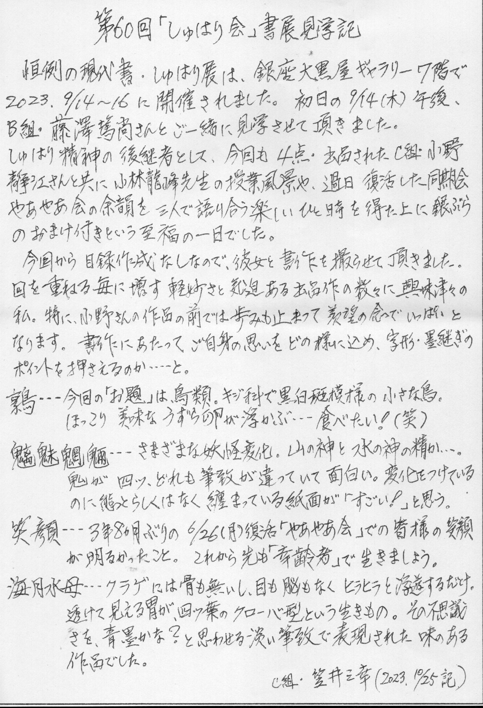 - 2023.09 『第60回しゅはり会 書展』・・・今回