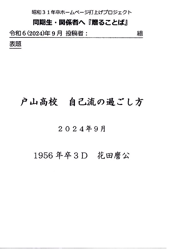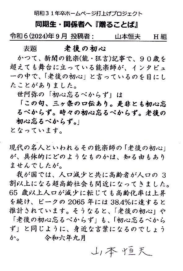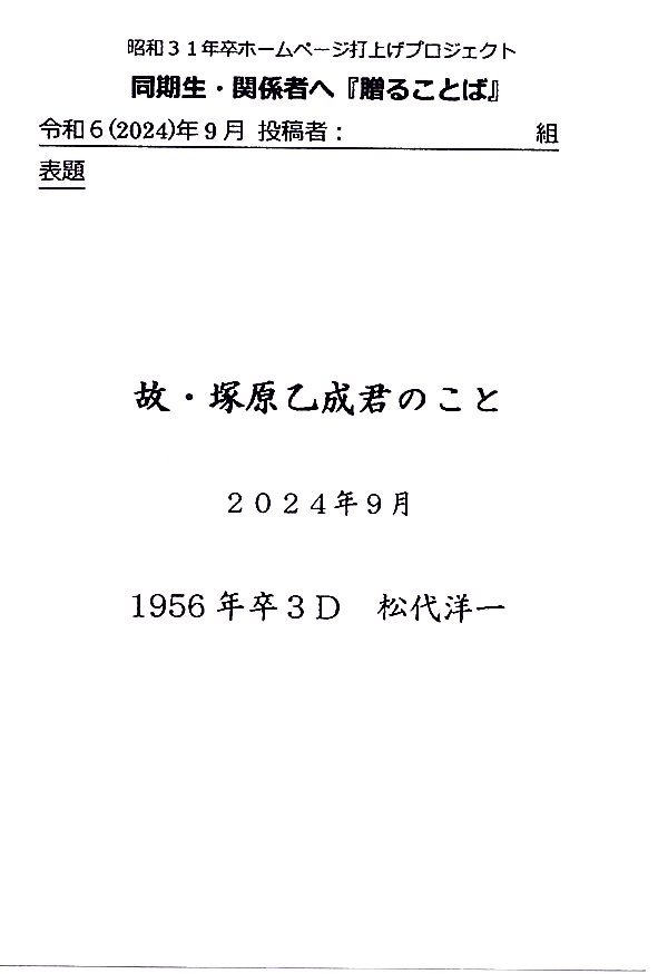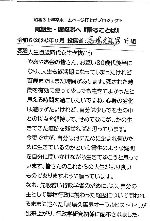 - 卒業50年誌への、貴重な・懐かしい投稿