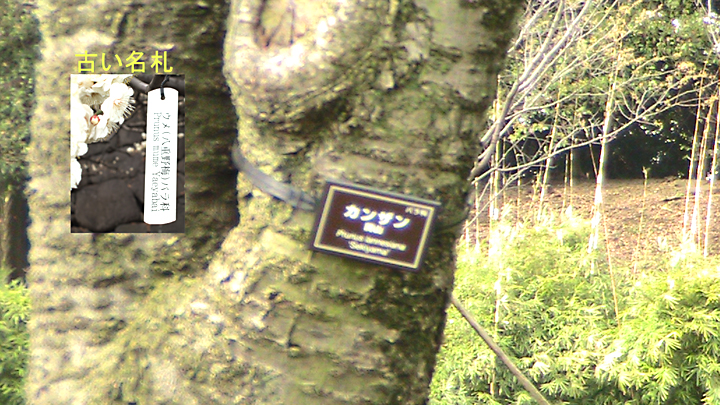 このタイプが、天皇、皇后両陛下が結婚五十年を迎えられるのを機に寄贈された「見やすい名札」とのことです。昔の名札も参考に掲示しました。 なお、ほぼ同じ名札が『戸山高校の卒業記念の柏』に