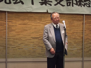 「元・長崎大学水産学部教授 平山 和次 さま」 都立戸山高等学校・昭和25年卒の平山 和次 さんから、ご講演を戴きました。 テーマは『マグロやウナギを食べ続けるには』で、「魚介物の増殖・養殖」の話です。内容は、明年の城北会千葉支部会報・第9号に発表予定です。 先生の御著書は、恒星社厚生閣発行の「水産学シリーズ」があります。 戻るページトップ